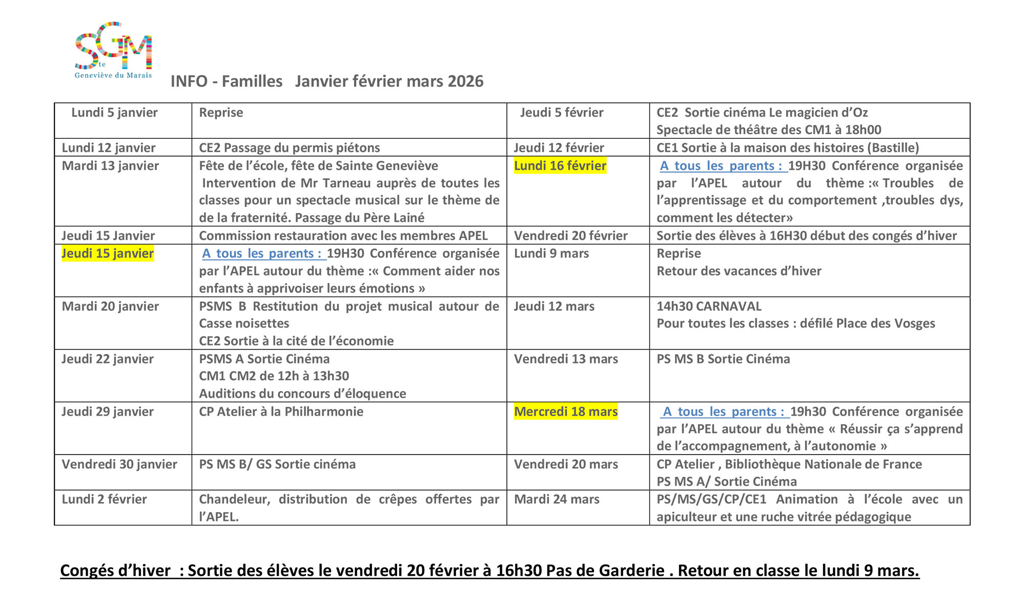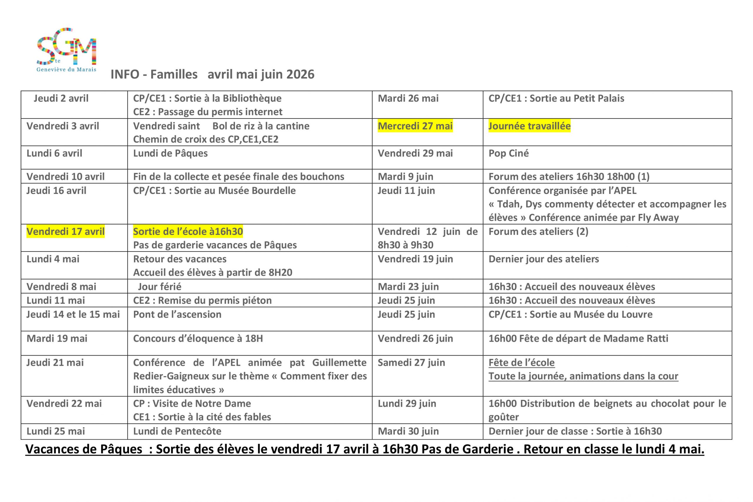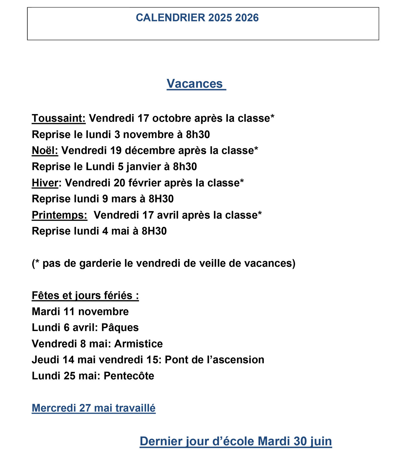 Cours le lundi, le mardi, le jeudi et le vendredi
